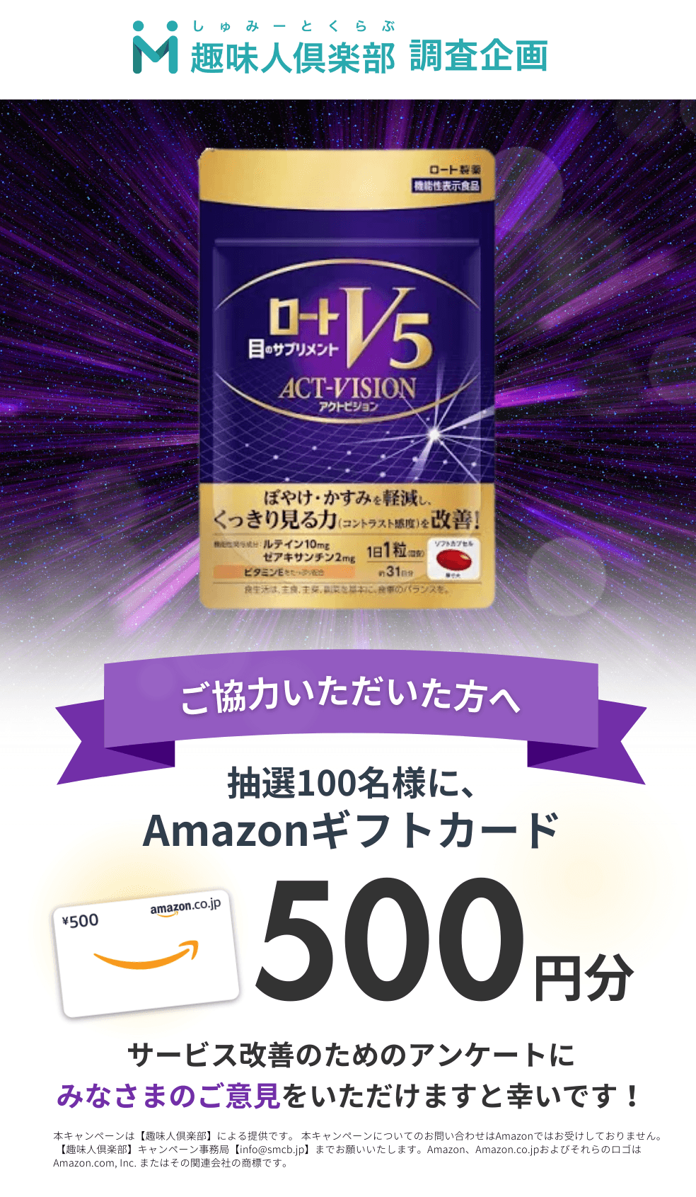 本アンケートをご回答いただいた方から抽選で100名様に、Amazonギフトカード500円分をプレゼント